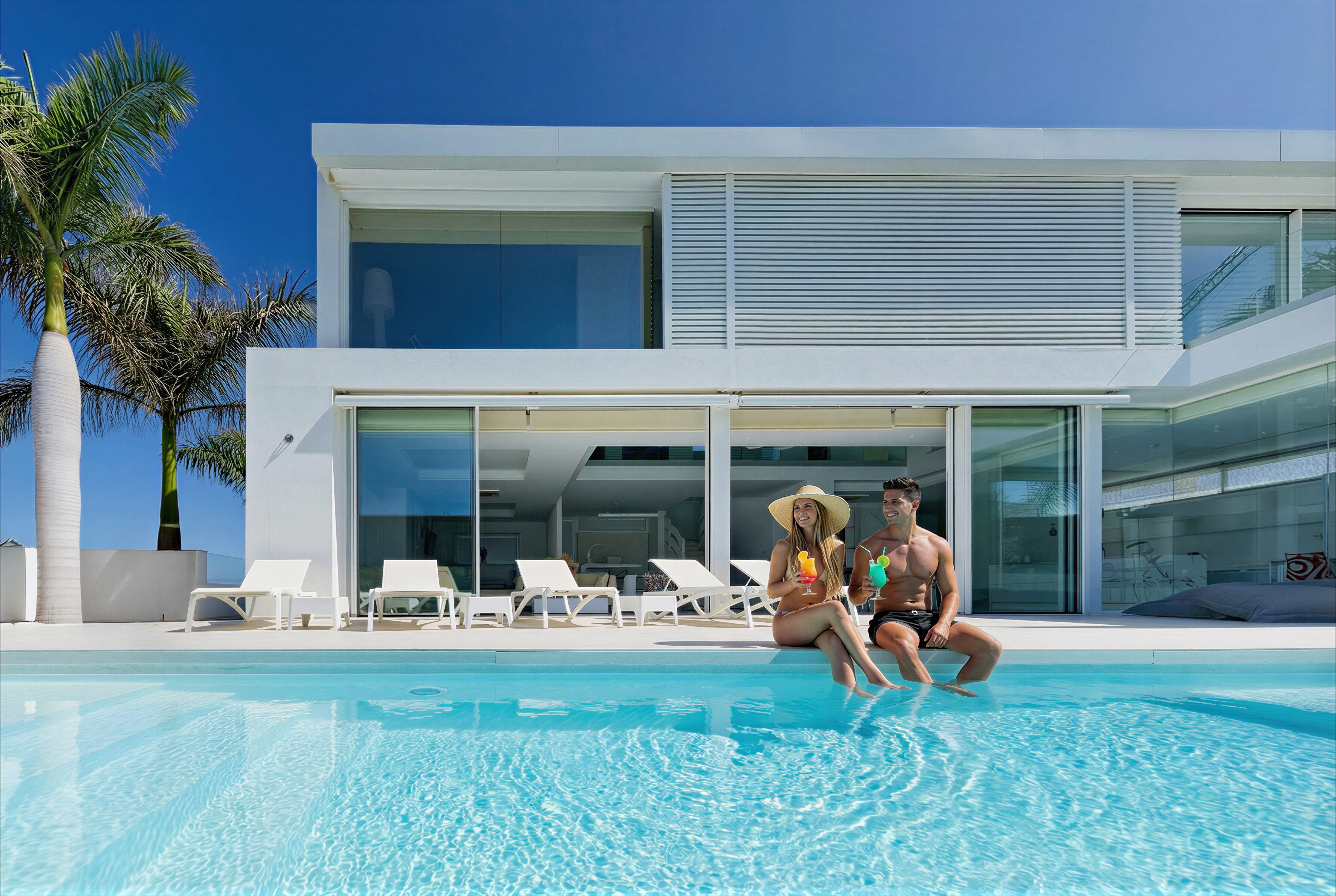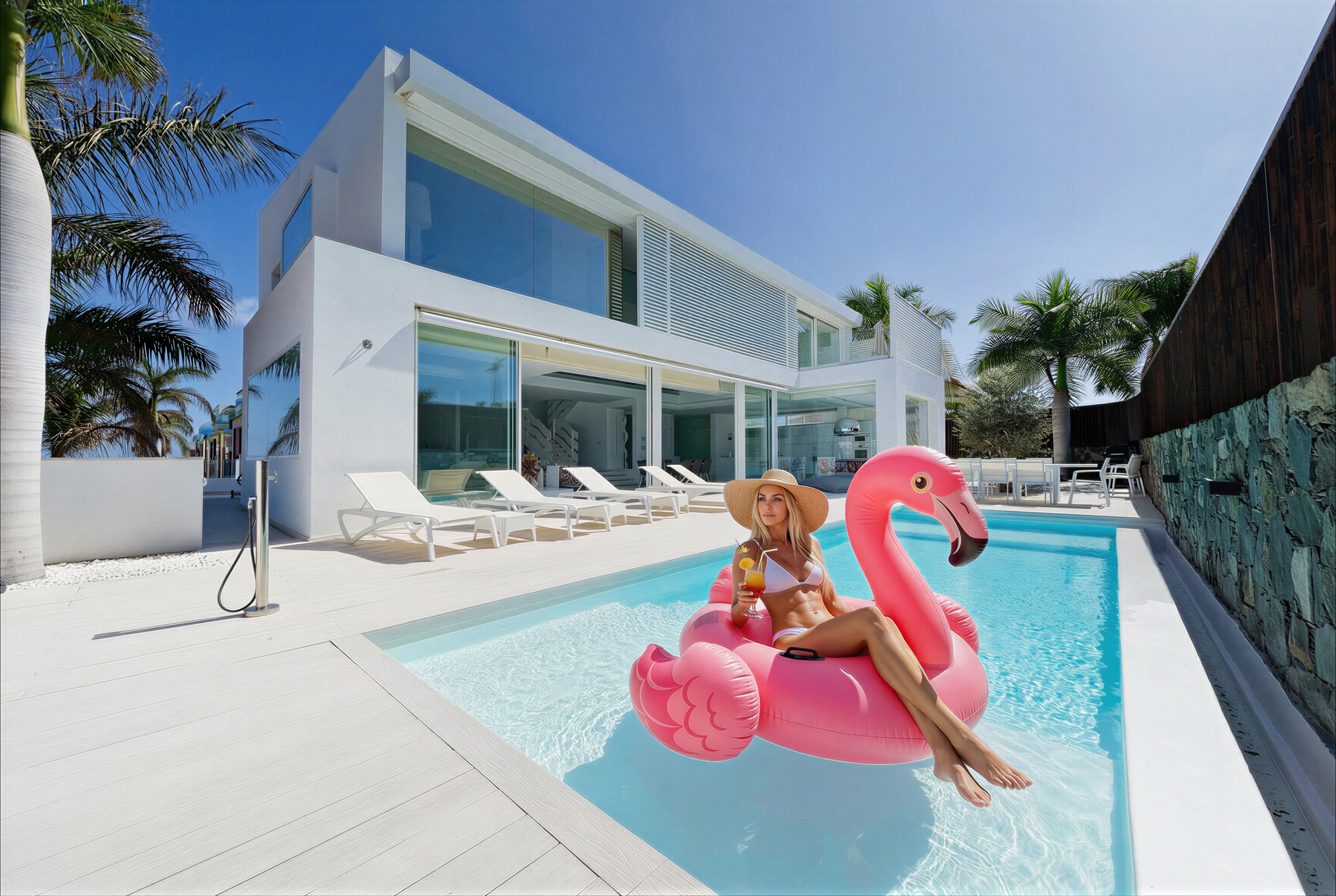 Villa moderna en Meloneras combina diseño contemporáneo, confort y privacidad en una de las zonas más exclusivas del sur de Gran Canaria. Cuenta con cinco dormitorios luminosos, además de cuatro baños completos con acabados modernos.