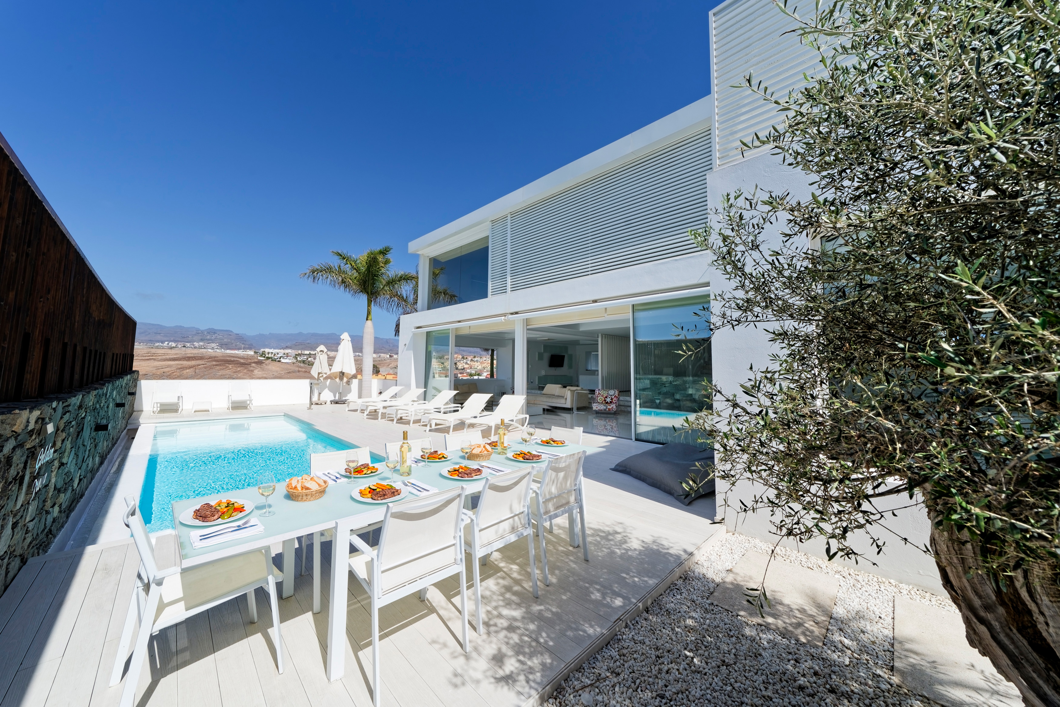 Villa moderna en Meloneras combina diseño contemporáneo, confort y privacidad en una de las zonas más exclusivas del sur de Gran Canaria. Cuenta con cinco dormitorios luminosos, además de cuatro baños completos con acabados modernos.